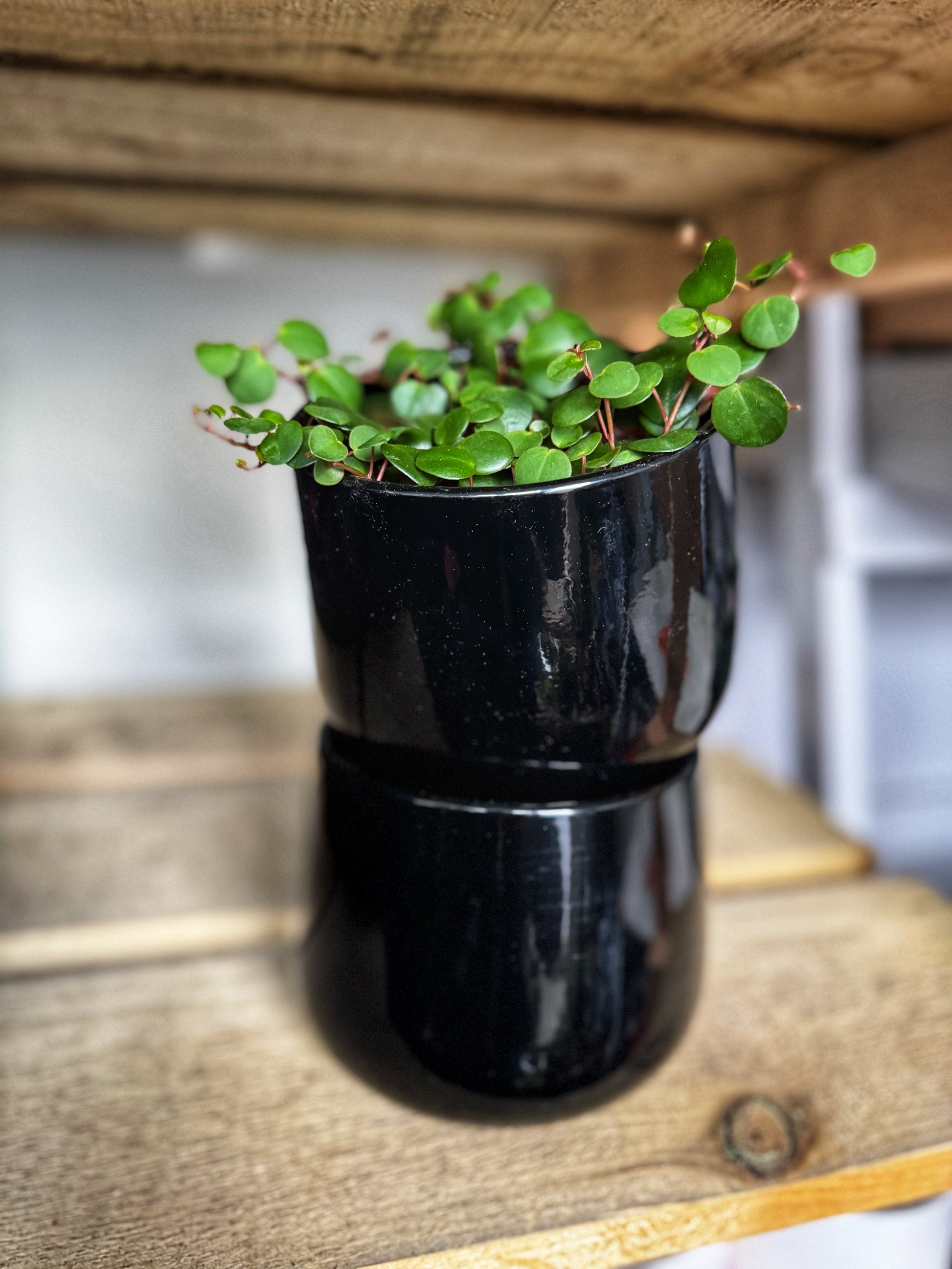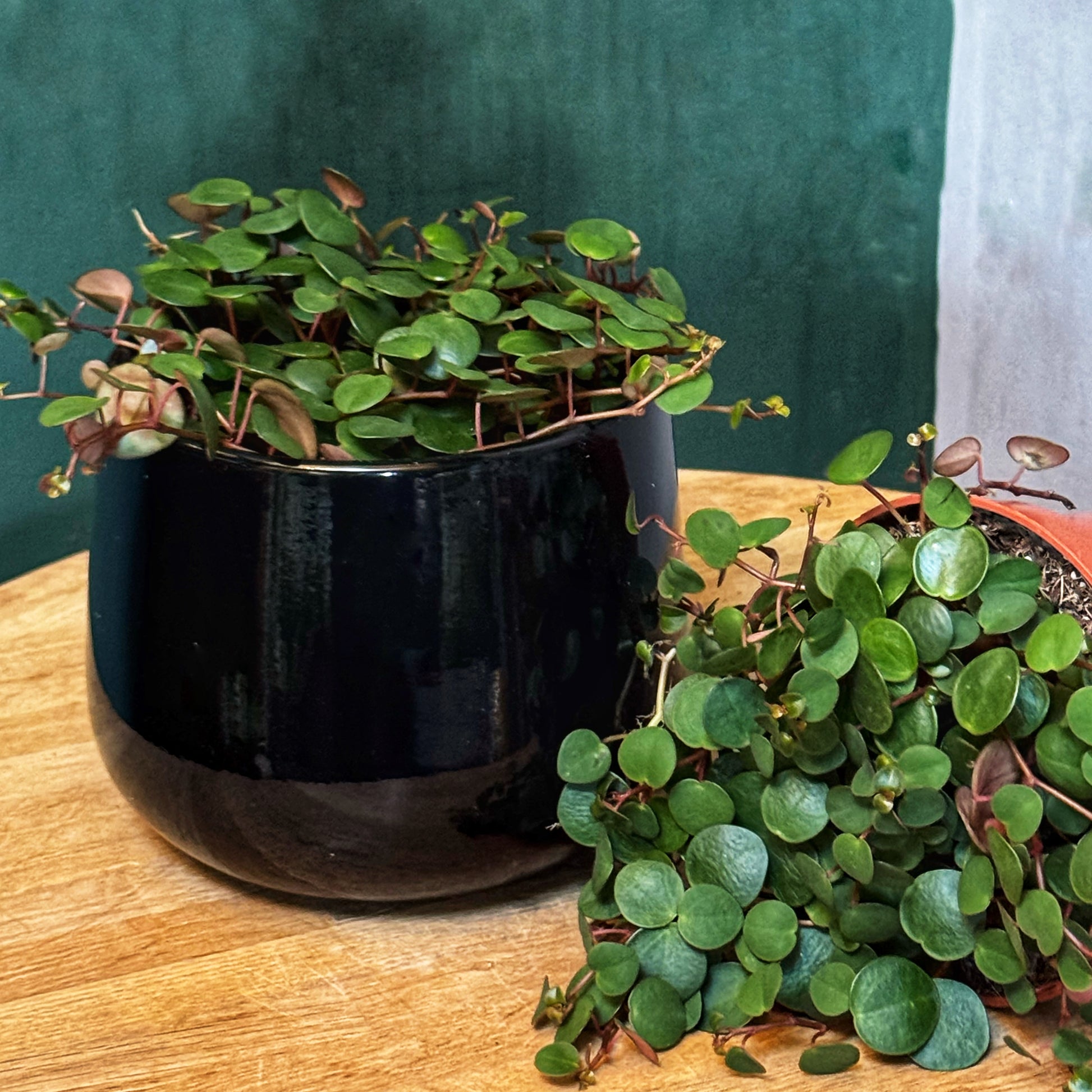 Sleek, chic and shiny! These black, rounded glazed pots are perfect to add a dark base to make any plant pop. For plants up to 11cm in diameter!