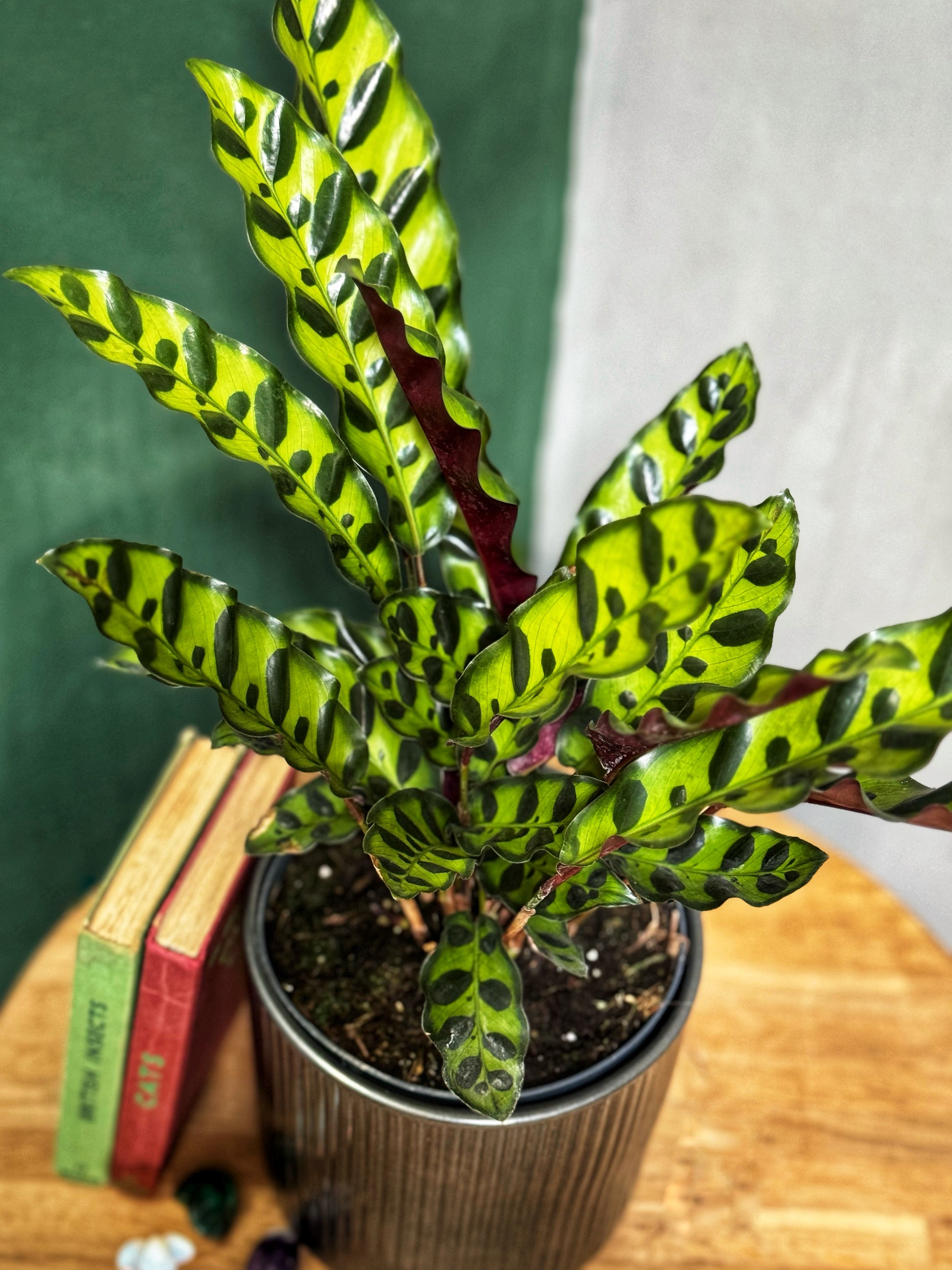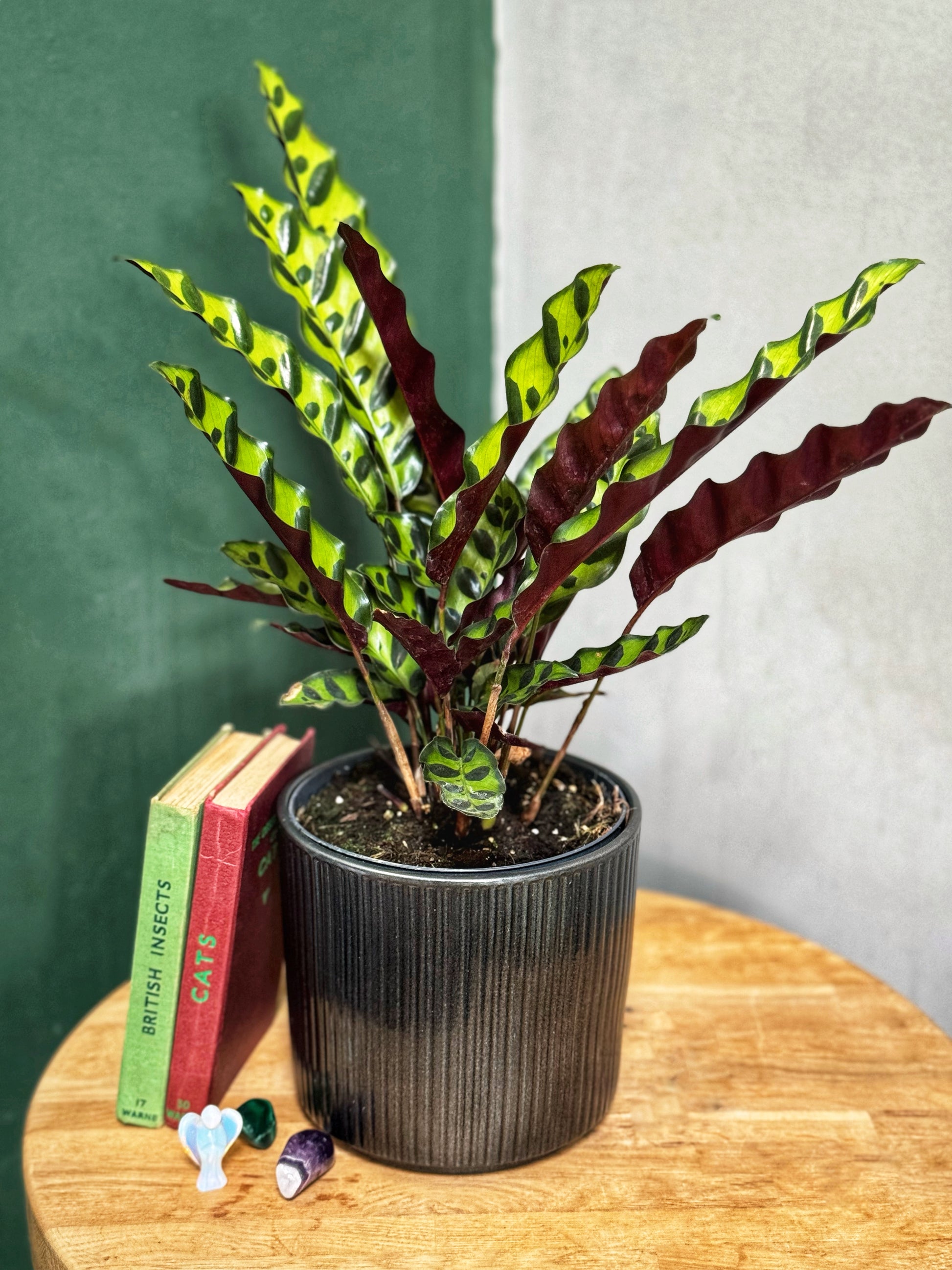 Water: Never let your calathea dry out fully, think little and often in summer, keeping soil moist but not standing in water, allow top 2cm to dry in winter. TOP TIP- use rain water, they can be sensitive to chemicals in tap water.