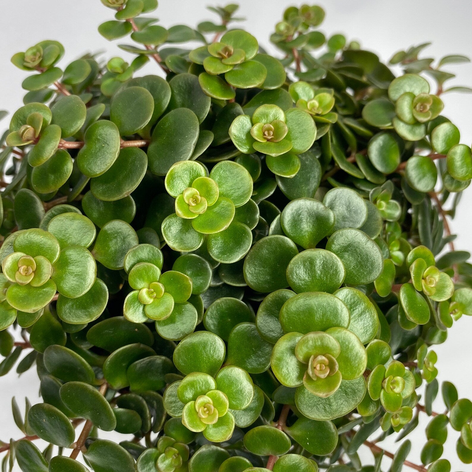 Sedum also known as a hardy succulents are native to Southwest Africa. Loves full Sun, will trail happily in a bright spot and flowers too. Great for beginners and to neglect.